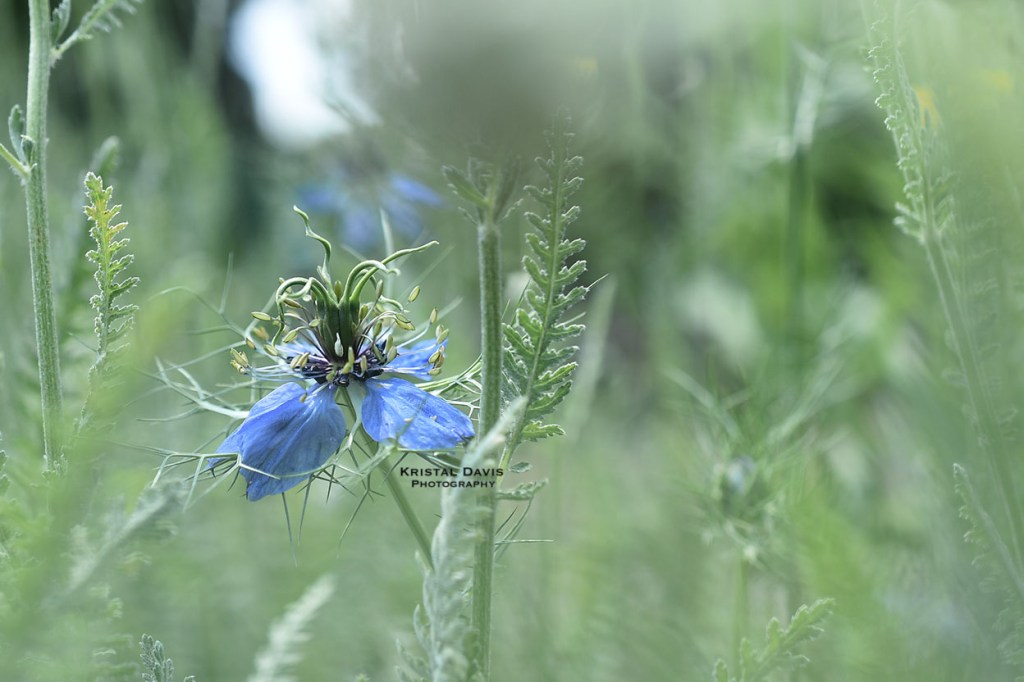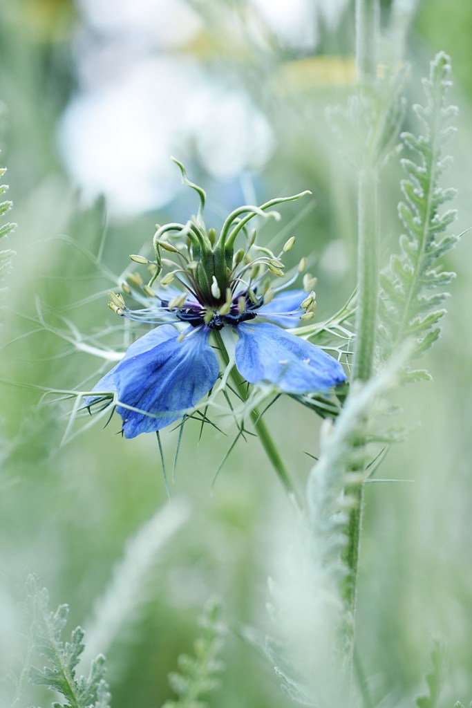 And then last summer I was at a local park with a beautiful garden. As I was taking pictures I noticed this blue flower hiding and I instantly knew it was Love in the Mist!
